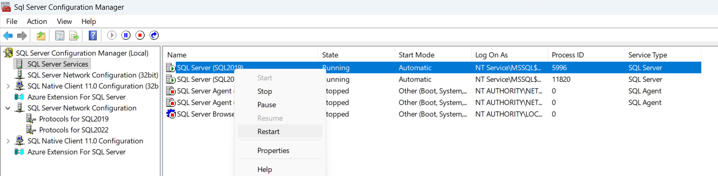 Step 4: Restart SQL Server Service: